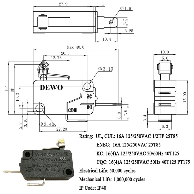 DV-16-A05-NN3-200E型微動開關