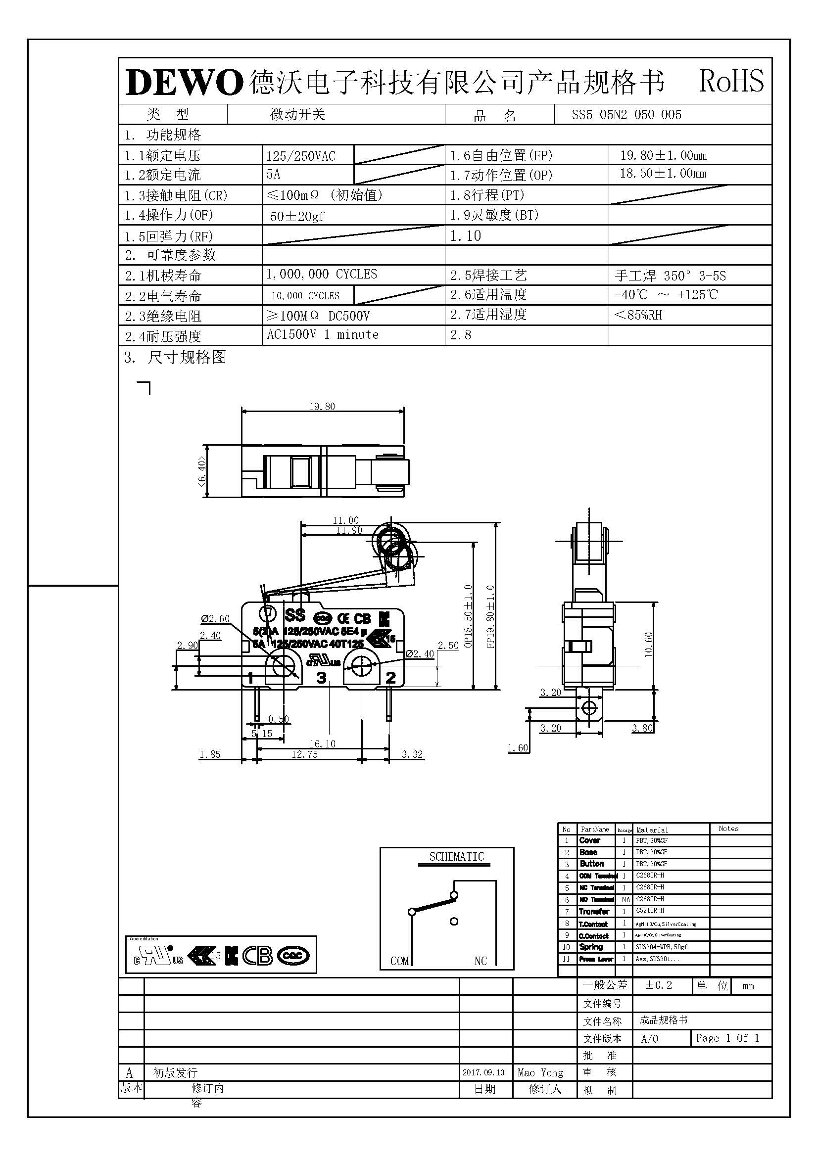 SS5-05N2-050微動(dòng)開(kāi)關(guān)